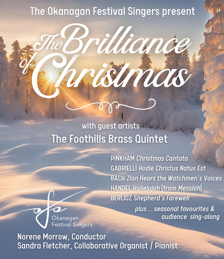 What better way is there to herald the Christmas Season than with the brilliant sounds of choral singing accompanied by brass instruments? The Okanagan Festival Singers will join forces with the Foothills Brass Quintet to present a concert that spans music from the Renaissance and Baroque periods to traditional favourites and fun modern classics. The programme will feature Daniel Pinkham’s “Christmas Cantata” for choir, organ and brass, as well as a little Bach and a little Handel alongside favourites like Deck the Halls, Ding Dong Merrily on High, A Visit from St. Nicholas, and The Twelve Days of Christmas like you’ve never heard it before. There will even be an audience sing-along. So get your tickets while you can and bring the kids! It’s only $15 for kids 18 and under.